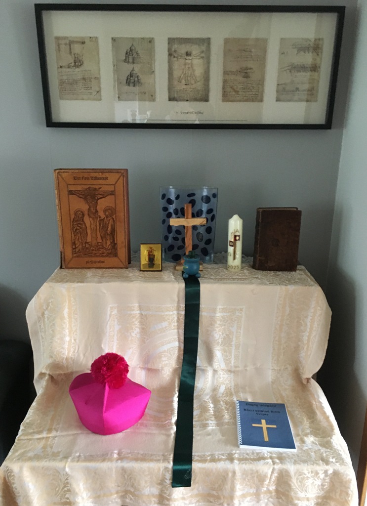 Nu inför höstens mässfirande kommer det vid vissa onsdagar eller torsdagar hållas en missa brevis -kort mässa- hemma hos vår kyrkas biskop i Segeltorp. I kalendern kan ni se vid vilka tidpunkter det blir. Helige Marin av Tours kapell 2025-08-17.